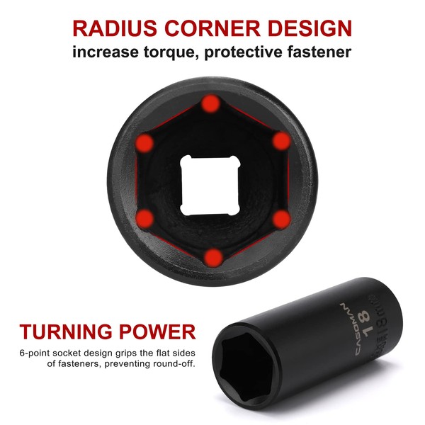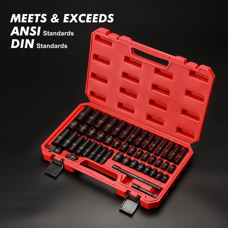 CASOMAN CASOMAN 3/8" Drive Impact Socket Set, 48 Piece Standard SAE and Metric Sizes (5/16-Inch to 3/4-Inch and 8-22 mm), 6 Point, Cr-V Steel Socket Set