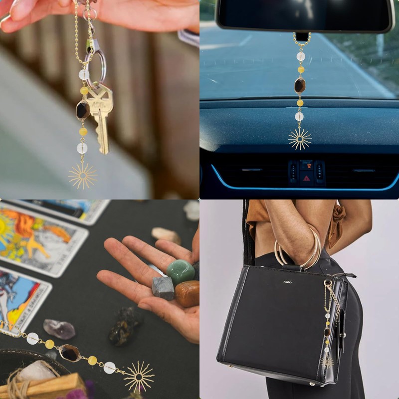 - But this car hanging ornament is more than just a pretty accessory. It harnesses the power of nature to bring a sense of well-being and harmony. The natural crystal stones have the remarkable ability to capture the sun's light energy, transforming it into a radiant glow that fills the car with an aura of natural energy. As you drive, it's as if you are accompanied by a constant source of positive vibes, dispelling any negative energy that may come your way. Whether you're stuck in traffic or embarking on a long journey, this ornament serves as a reminder to stay calm and centered, allowing you to enjoy a more peaceful and enjoyable driving experience.