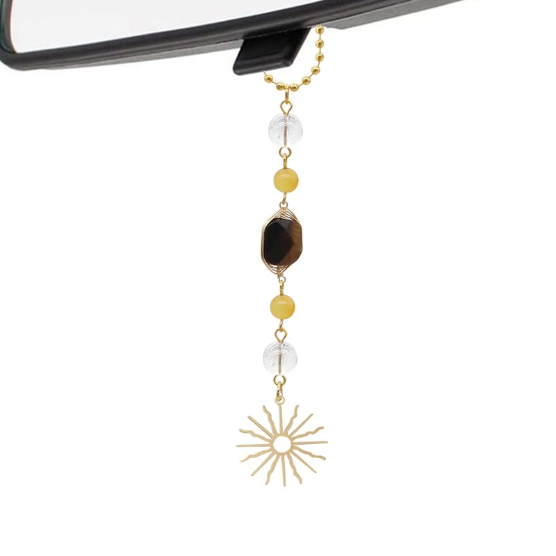- Exquisite Car Decoration:This is a sun car ornaments for rear view mirror,handmade with natural tiger's eye crystal stones,white and yellow crystal beads,sun pendant,gold-plated alloy wire.Each stone is unique,finely polished,round and bright,with a simple and unadorned texture that reveals the beauty of nature
