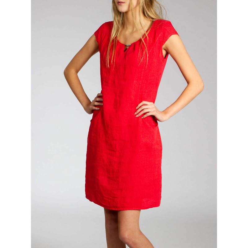 Caspar SKL020 Women's Knee-Length Summer Linen Dress with Elegant Metal Clasp up to UK Size 22 - red, size: 44