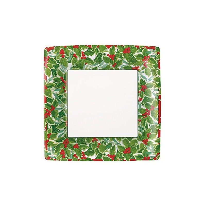 Caspari Christmas and Holiday Holly and Mistletoe Paper Dinner Plates - 8 Per Package