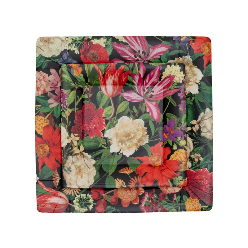 Caspari Dutch Floral Black Square Paper Dinner Plates - Includes 12 Packs of 8Paper Dinner Plates