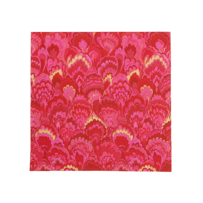 Caspari Marbled Ceramica Red & Fuchsia Cocktail Napkins - Includes 2 Packs of 20 Cocktail Napkins
