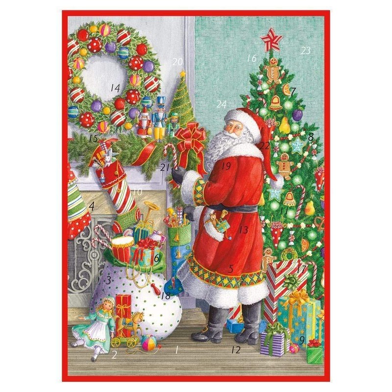 Caspari Santa at The Mantel Advent Calendar Greeting Card - 1 Card and Envelope