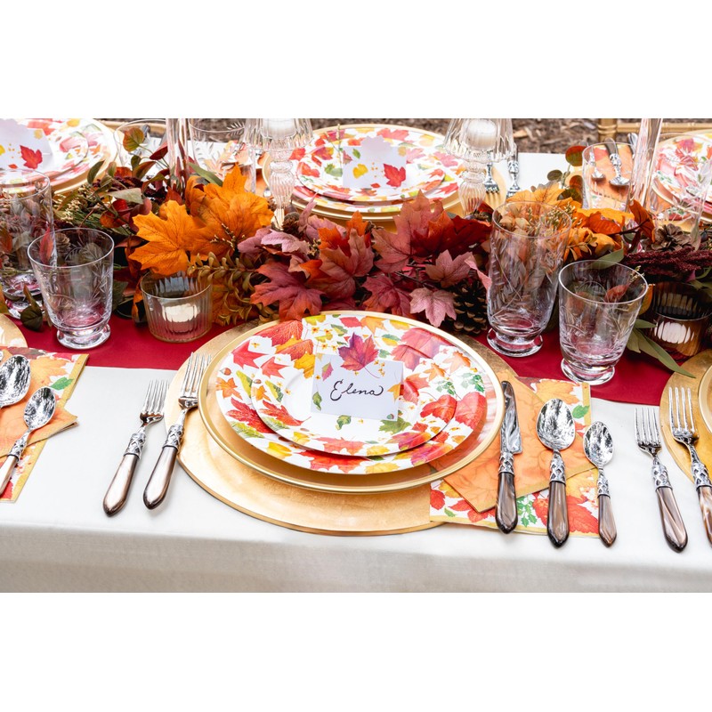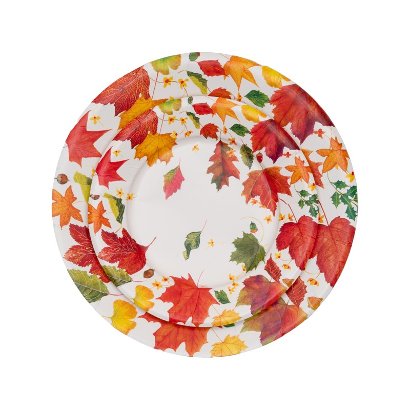 Caspari Swirling Leaves White Paper Dinner Plates - Includes 12 Packs of 8 Paper Dinner Plates