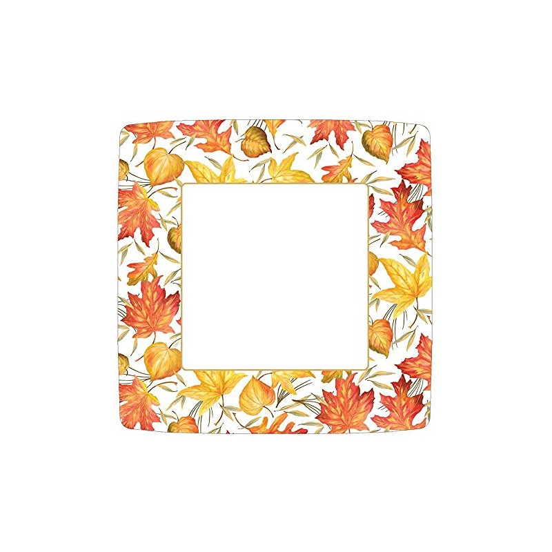Caspari Woodland Leaves Square Paper Dinner Plates in Ivory - 8 Per Package