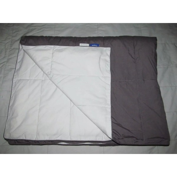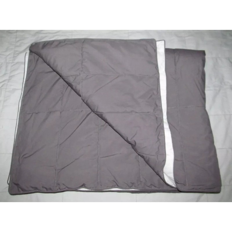 Here is a very nice International long-haul first class duvet cabin blanket from US major carrier AMERICAN AIRLINES. Made by luxury bedding designer, CASPER, quilted blanket is grey in color on one side, white on the other. There is a double sided blue CASPER logo tag along one edge as well as an American Airlines logo tag. Made of a durable modacrylic material. Blanket measures approx. 72" x 46" and is in very good used condition. Item has been freshly/properly laundered and will arrive ready for use or display.