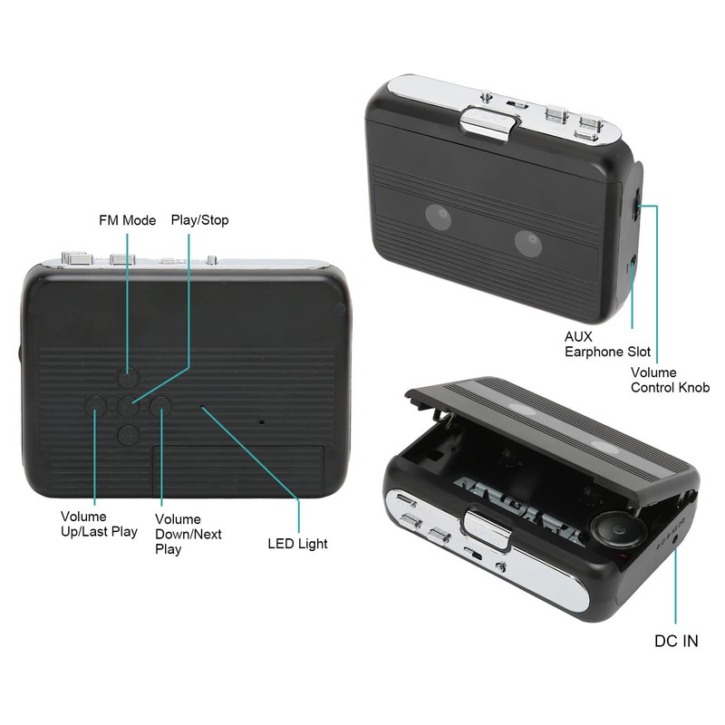 - 2 POWER WAYS & AUTO REVERSE The wireless cassette player is powered by 2 AA batteries (not included) or DC 5V power supply (not included) With auto reverse, you can choose to listen to music on one side or both sides according to your preference The stereo cassette player fits perfectly in your pocket for travel