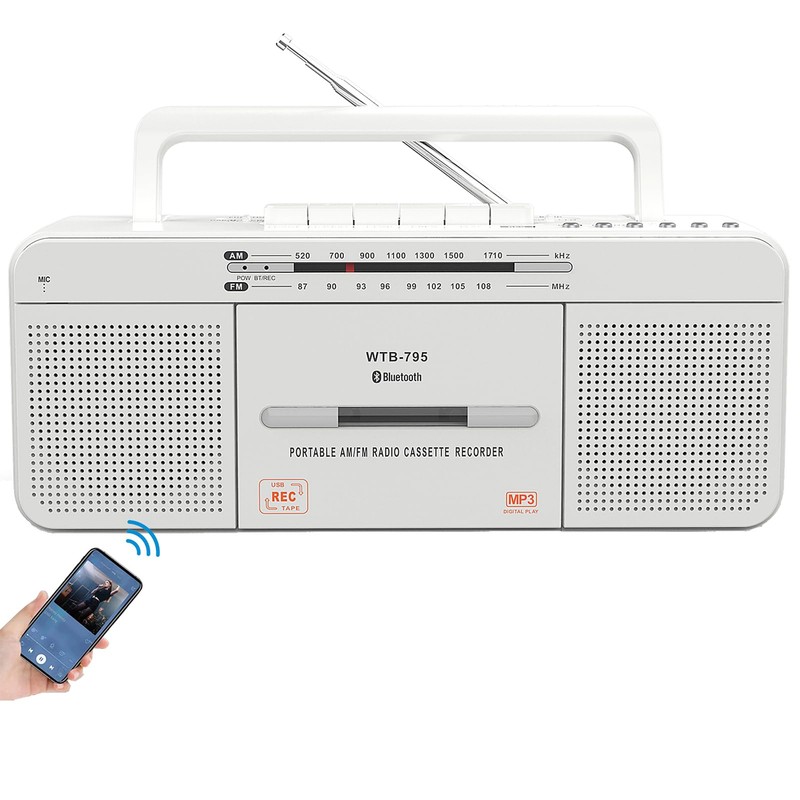 - 【Multi-functional Cassette Tape Player】This Vintage Cassette Recorder Player supports: 1.Tape Player, 2.USB Flash Drive Player, 3.Bluetooth Boombox, 4.FM Radio, 5.AM Radio, 6.Microphone Recorder,7. 3.5mm Audio Player. With fast rewind and fast forward,auto stop cassette player audio recorder.switch at will to meet the needs of various scenarios.