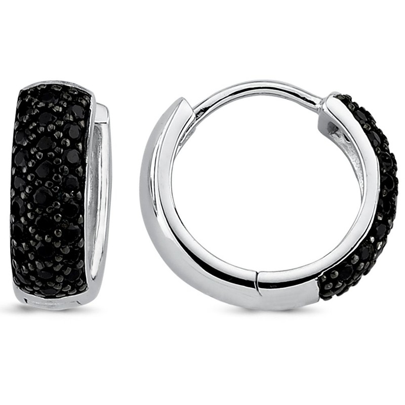 Cassini 3CZSX1 Folding Creole Earrings Made of High-Quality 925 Sterling Silver with Black Zirconia Stones Modern Design, Sterling Silver