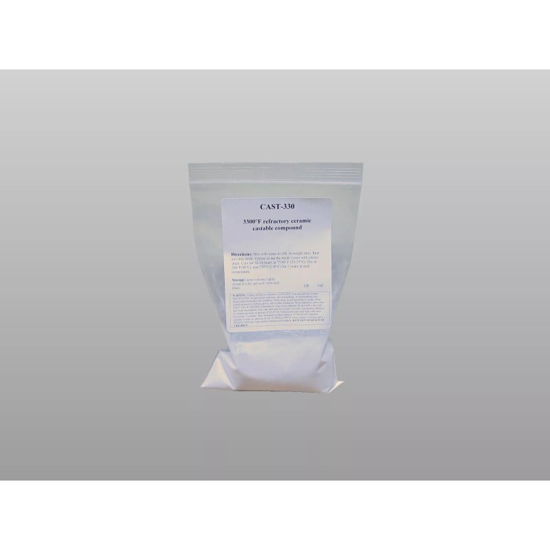 CAST-330 is 94% alumina fine-grain hydraulic bonded castable ceramic compound for producing small and medium-sized parts which can withstand temperatures up to 3300°F (1800°C) under load. Mix with water in 100:16 weight ratio, transfer the mix into the mold, cover with a plastic sheet and cure for 16-24 hours at 77-95°F (25-35°C). Then dry at 200°F (90°C) and 270°F (130°C) for 1-3 hours at each temperature.