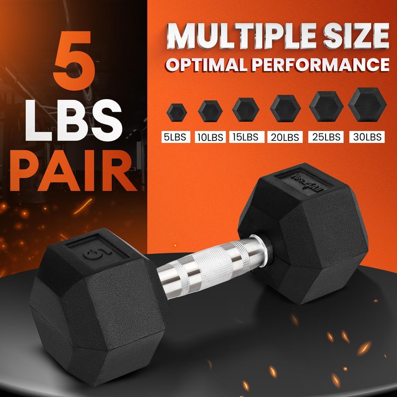- DURABLE AND NOISE REDUCING: Our weights dumbbell are constructed with solid cast iron core and rubber coated encasing for long lasting and easy cleaning; The thick rubber coat on hex dumbbell also minimize noise and protect floors during your workout routines