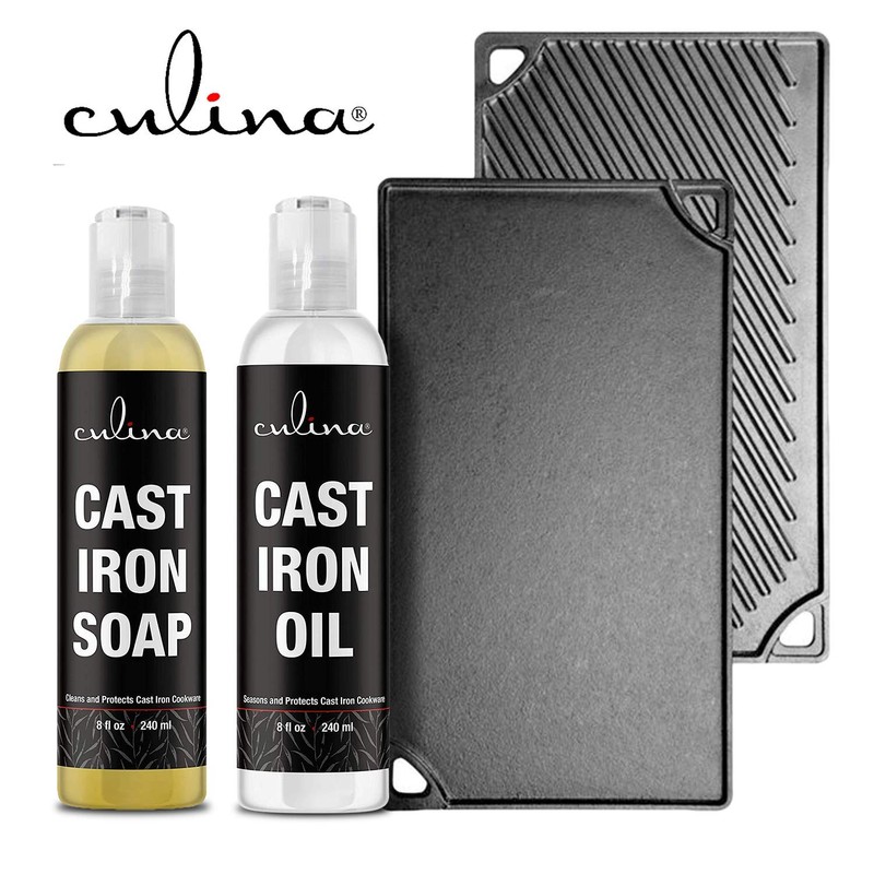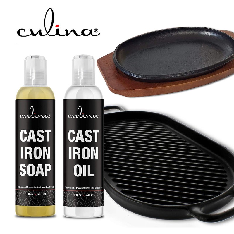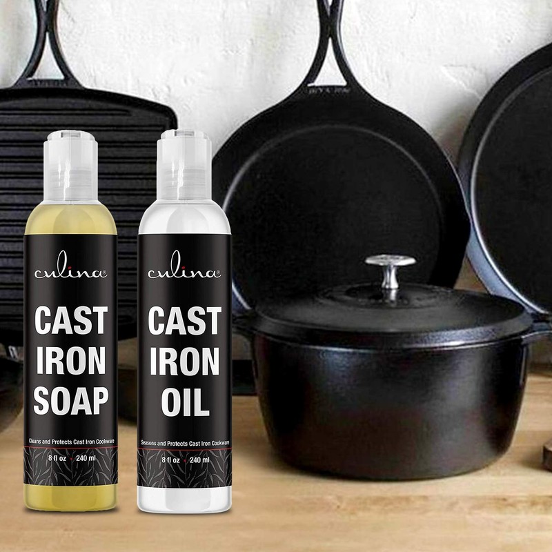 Culina Cast Iron Cleanser naturally cleans all cast iron cookware, woks, dutch ovens, griddles and more, removing stubborn odors and cooked on food while preserving the seasoned cooking surface. Use this gentle cleanser alongside Culina Cast Iron Conditioner to keep all of your cast iron at its best.