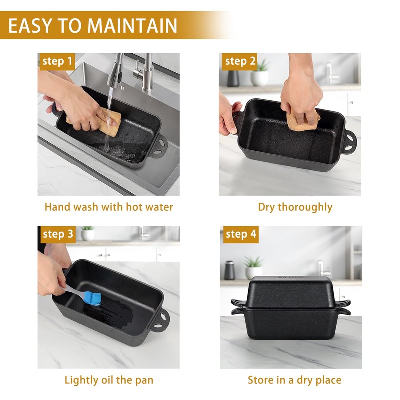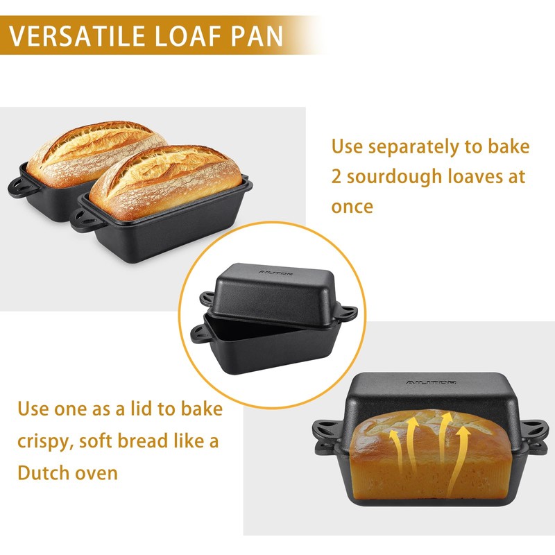 AILITOR Cast Iron Loaf Pan with Lid 9x5 Inch - Bread Baking Pans for Homemade Bread, 2 Piece Set