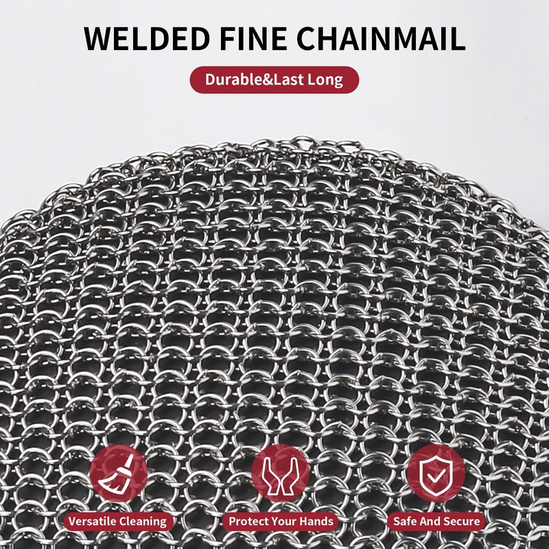 - 【Welded 316 Stainless Steel Fine Ring】- Durability You Can Trust. Crafted with precision and built to last, our chainmail scrubber made of welded 316 stainless steel fine ring. This high-quality material guarantees superior durability and resistance to corrosion, ensuring your cast iron scrub will stand the test of time and provide reliable performance for years to come.