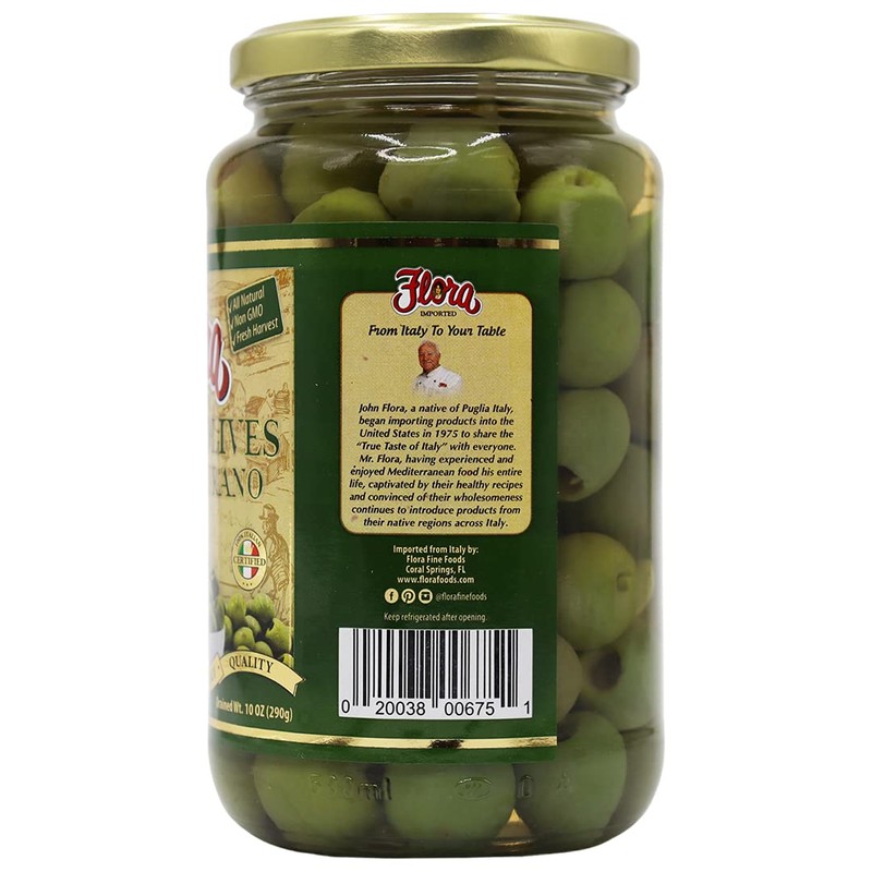 Flora Foods Italian Olives Castelvetrano Pitted | Sicilian Olives | 19 oz (530g) | 100% Italian | All Natural | Non GMO | Fresh Harvest