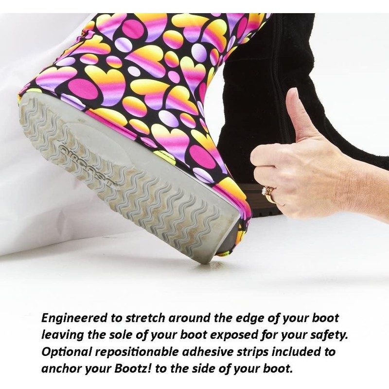 - Protect your boot and cover your toes and those stick-to-everything Velcro straps with our daily wear Bootz! Our Bootz! are engineered to stretch around your boot leaving the sole and tread of your boot exposed for two reasons. #1, for your safety and #2 fabric can't be walked on.