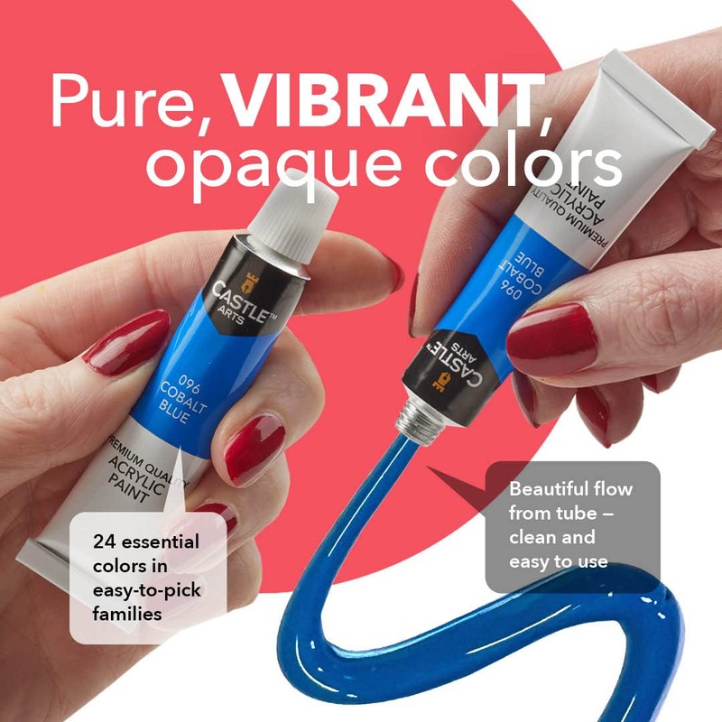 Castle Art Supplies 24 x 12ml Acrylic Paints Tubes Set for Adults Artists Beginners | A Perfect Mix of Quality and Versatility - Vivid Colours - Easy to Blend and Good Coverage on Paper Canvas Wood or Fabric