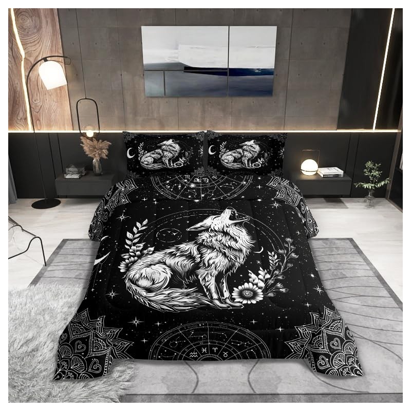 Castle Fairy Exotic Bohemian Lotus Mysterious 3 Pcs Queen Size Comforter Set,Constellation Starry Sky Moon Down Alternative Adults Room Decor, Wild Animals Plant Ultra Soft Inner Fill 3Pcs Bedding