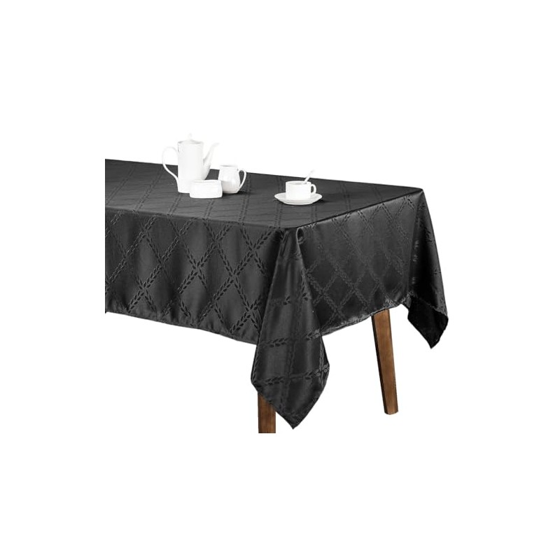 Castle Selection Fabric Tablecloth Spill Proof 7-9 Feet Table Decorator Jacquard Myrtle Leaves Pattern, 60" x 120", Black