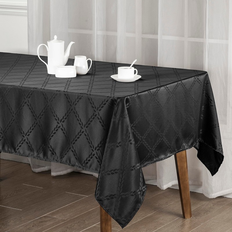 - Decorative solid color tablecloth with jacquard design of intersecting myrtle leaves