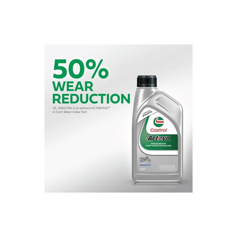 Part-synthetic, 4-stroke motorcycle oil specially formulated with heat protection molecules to protect your motorcycle's engine against high temperature deposits and wear.