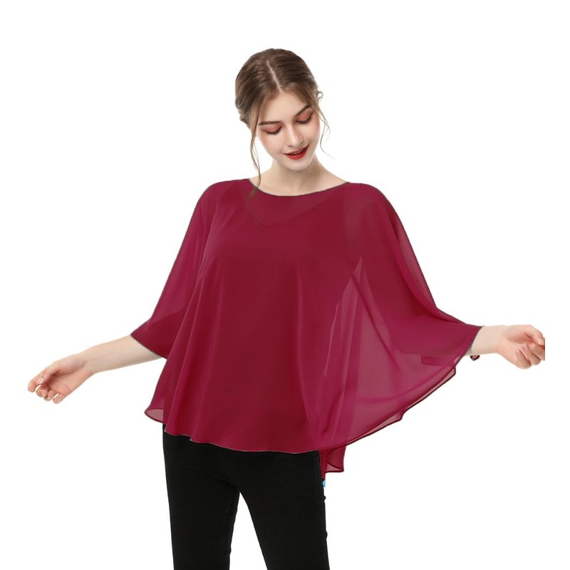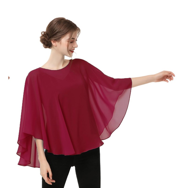 Casual Chiffon Cape Soft Shawl Sheer Shrugs Poncho Capelets shawls and Wraps for Women (Wine Red)