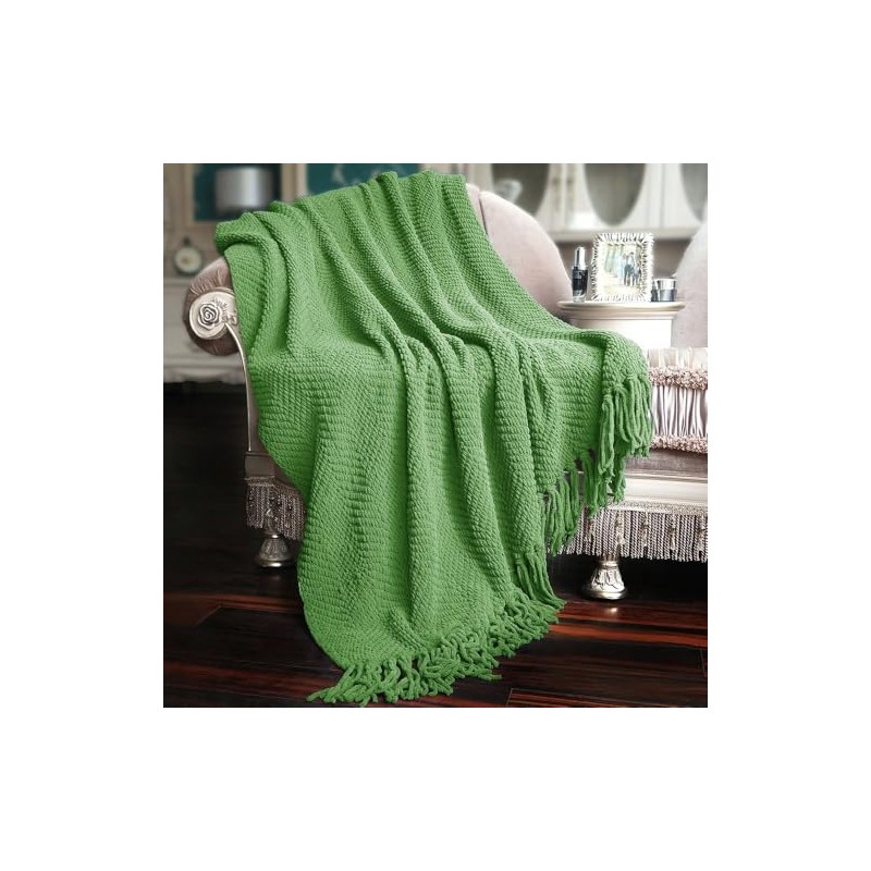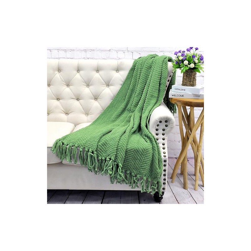 - Casual Style Super Soft Plush Lightweight Tweed Knitted Throw Blanket for Couch Sofa Bed 60" X 80" | Solid Sea Green Color All Seasons Cozy Fuzzy Luxury Feel washable Boho Throw Blanket