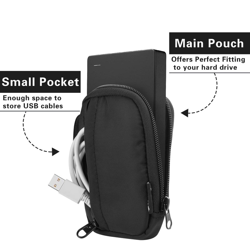- 【Well Organized】2 pockets design, sufficient space to better tidy your device and accessories. The main pouch is for HDD decive and the pocket on the back stores cable and other small items.