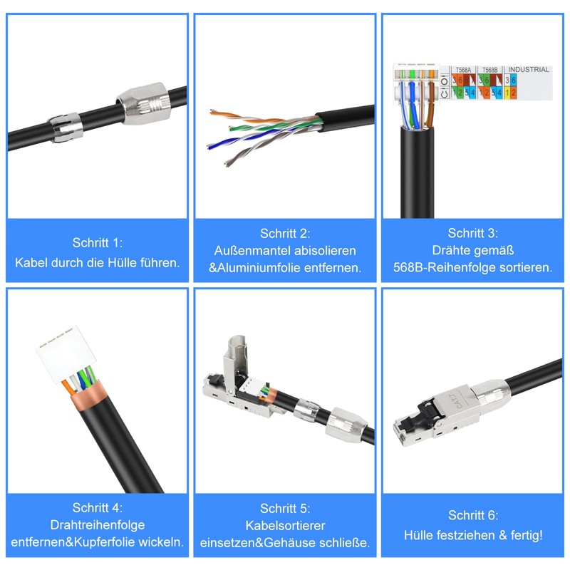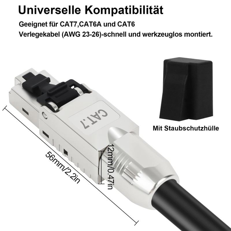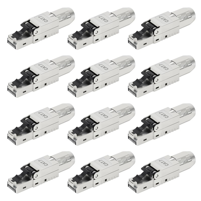 - Robust and shielded design: the LAN plug Cat 7 tool-free has a fully shielded STP housing made of zinc alloy, which reduces EMI and RFI interference. 50 μ gold-plated contacts ensure stable signal transmission, corrosion resistance and long service life, even with frequent plugging and unplugging