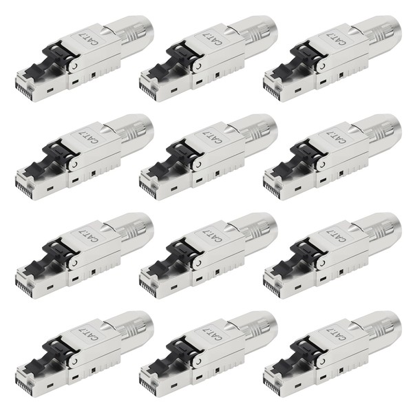 CAT 7 RJ45 Connector, Tool-free, Network Plug, LAN Plug, Fully Shielded STP 10 Gbps, AWG 23-26, Compatible with CAT7/CAT6A/CAT6 Ethernet, Gold-Plated Contacts, for Patch Panel Home Network (Pack of 12