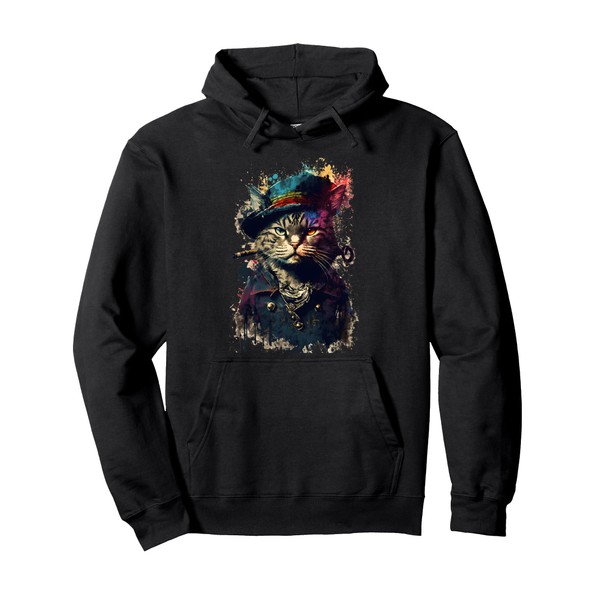 Cat as a Pirate Wearing Uniform and Hat Painting Cat Pirate Pullover Hoodie