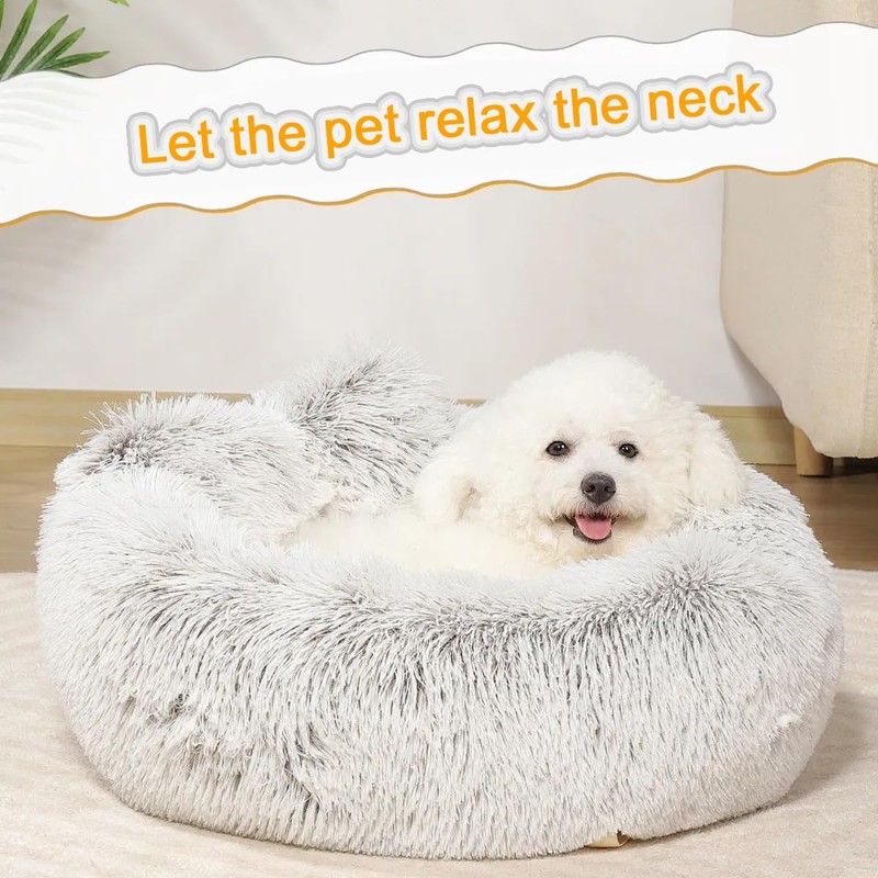 - Pet safety material: Made of charming luxurious artificial fur, in the shape of macaron colored donuts. The circular pet bed provides a safe, perfect for cats or small dogs to take a nap. Your furry children will feel surrounded by love and warmth, allowing them to experience truly peaceful sleep.