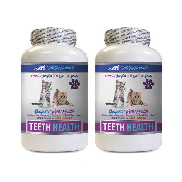 **cat breathe treats - CAT TEETH HEALTH - ADVANCED MOUTH HEALTH COMPLEX - IMMUNE BOOST - cat vitamin c - 2 Bottles (120 Tablets)** **CAT TEETH HEALTH FROM CRANBERRY'S:** Cranberry extract can provide your cat with eye health, brain health, urinary tract support and teeth health. Cranberry extract can help prevent plaque build-up on your cats teeth. This is important because dental plaque is a significant cause of tooth decay. So get our supplement today. **TEETH HEALTH FOR CATS:** Grape fruit extract (GSE) is one of natures antiseptices and can be used in many ways. GSE can help your cats body resist many negative influences on his health. At the same time grape seed extract can help clean and support your cats teeth and gums. Its in our formula so you might as well give it a try. **KEEP YOUR CATS MOUTH CLEAN:** Cats aren't born with healthy mouths that will stay that way into adulthood — it's up to cat owners to help them keep their pearly whites in tip-top shape. You can do this in many ways but our supplement provides a simple solution and gives your cat many mouth and health benefits. **COENZYMES Q10 FOR TEETH HEALTH IN CATS:** Coenzymes Q10 are really powerful and have great benefits for your cats teeth health. Its an antioxidant credited for fighting against the damage of free radicals; also shown to help with gum issues, and also in decreasing inflammation, redness, and pain in the gums for cats, which is why its in this supplement.
