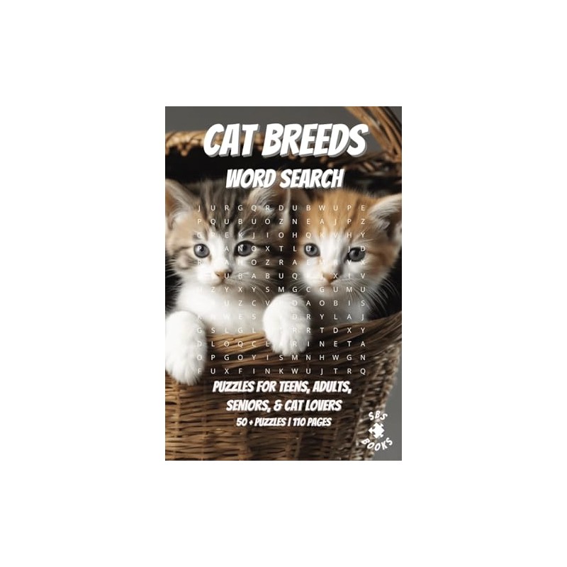 Cat Breeds Word Search: With easy to read print | Puzzles for teens, adults, seniors, & cat lovers | Can relieve stress and anxiety | 6x9inches, 50+ ... gift for vacations, holidays and free time