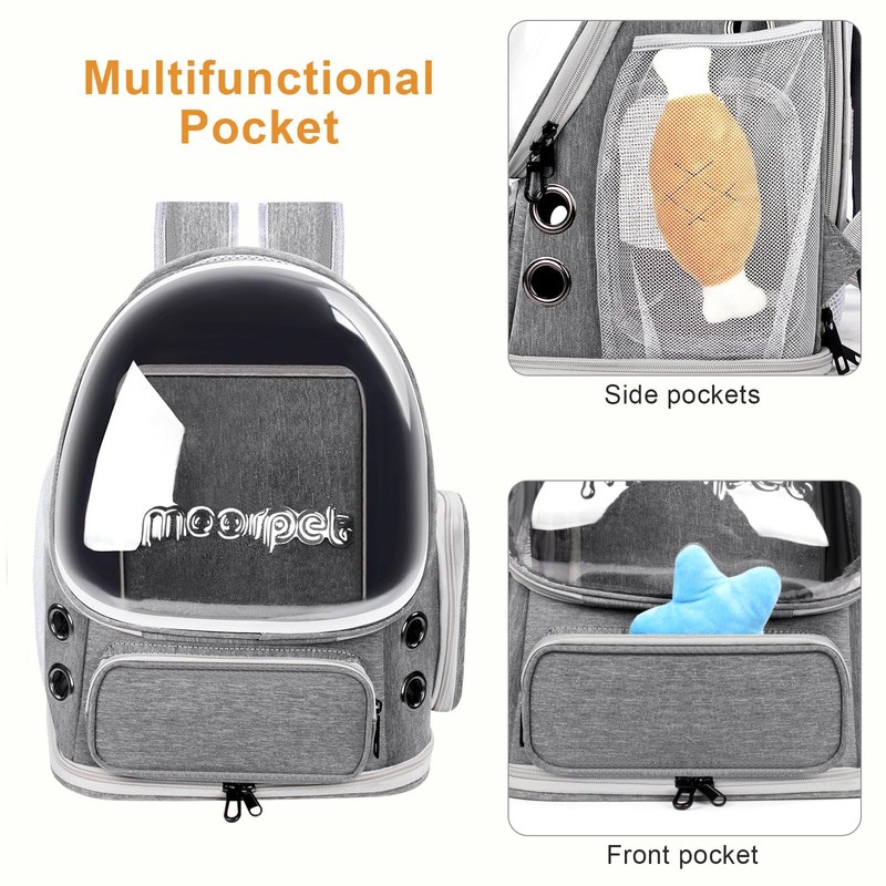 - Multi-Pocket Design: Our pet carrier backpack offers plenty of storage options for your convenience. With side pockets and hook holes, you can easily carry essentials such as treats, toys, and water bottles for your pets. The multi-pocket design allows you to organize your belongings efficiently, making outdoor adventures and trips more enjoyable.