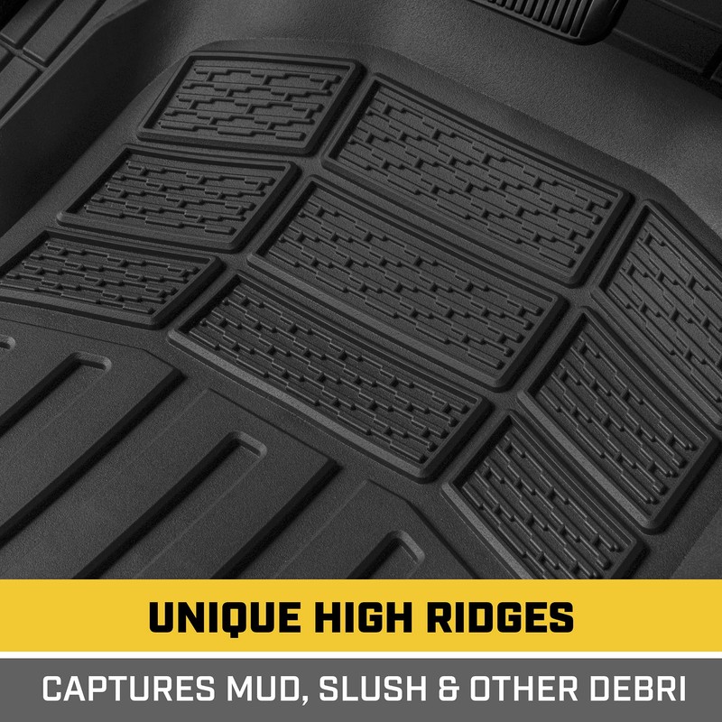 - Flex-Tough Reservoir - Captures mud, slush and other debris. These Heavy Duty Mats won't crack or curl in extreme weather.