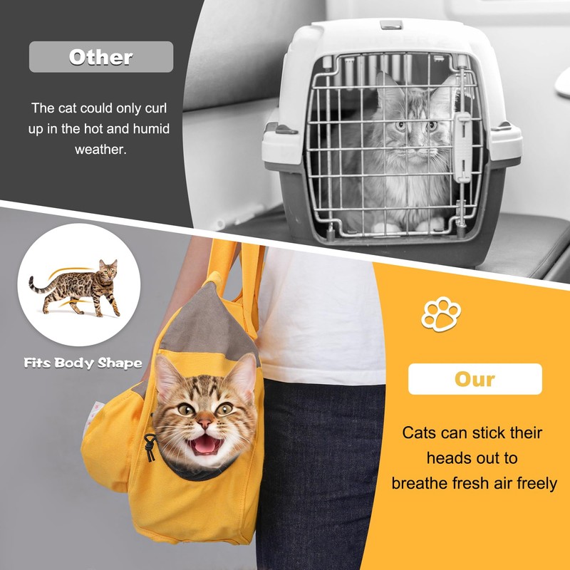 - Peek & Tail-Out Openings: Wide front and top openings of the cat carrier pouch allow curious pets to peek out and enjoy the scenery. Tail-out design and adjustable neck hole of the cat carrier soft let you monitor your pet’s mood while easing anxiety in the pet carrier for cat during travel