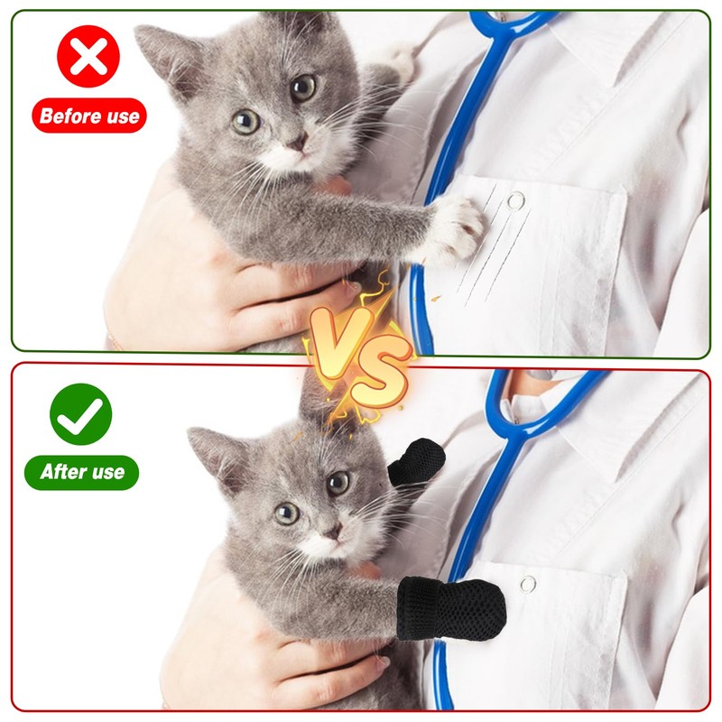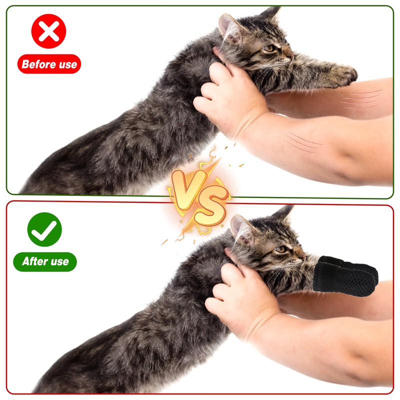 • WIDE RANGE OF APPLICATIONS: These cat foot covers are great for protecting you from scratches during activities such as bathing your cat or other household pets and trimming their nails