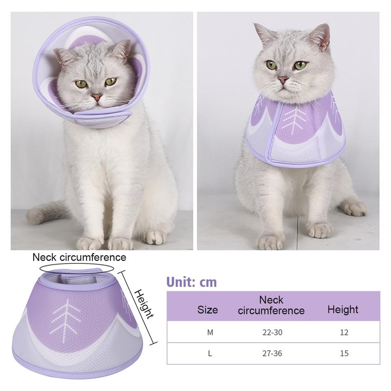 • SIZE:Available in two sizes.Size M neck circumference of 22-30 cm, depth of 12 cm.L neck circumference of 27-36 cm,depth of 15 cm.Please carefully measure the neck size and neck to the nose of your pet.Ensure that the length of your cat's head is less than the depth of the small cone.