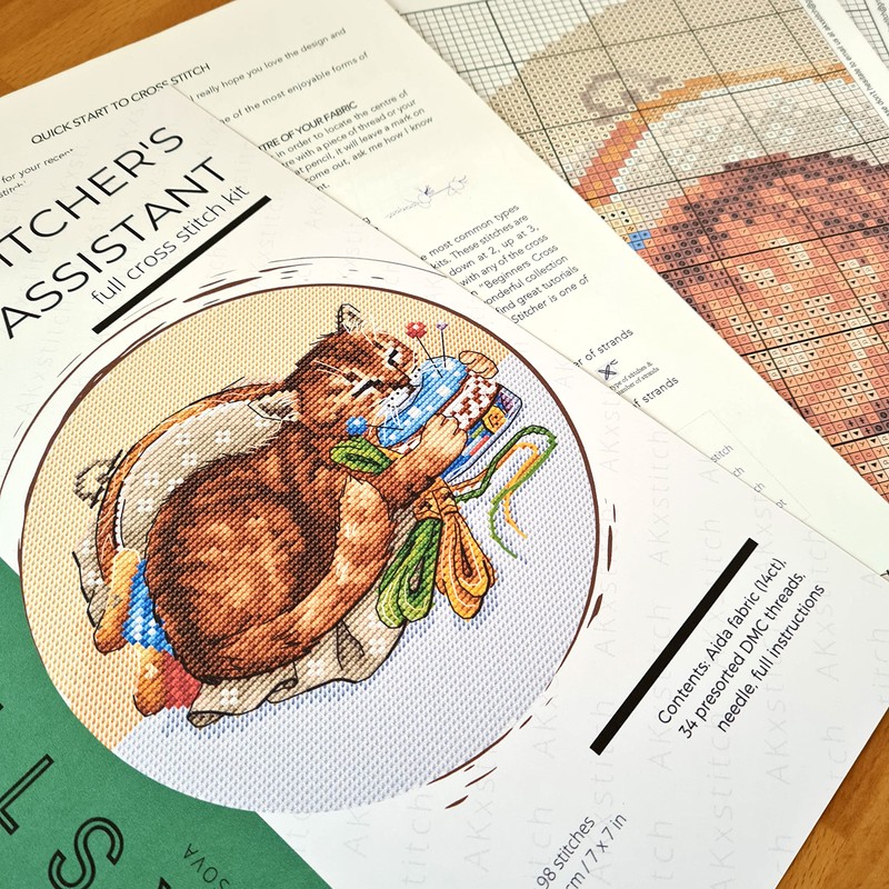 Cat Cross Stitch Kit "The Stitchers's Assistant" with Threads, Fabric, Needle and Instructions HANDMADE