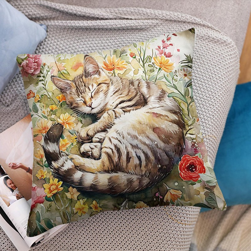 - MULTIFUNCTIONAL HOME DECOR - The cat pillow cover is not only perfect for your sofa or couch but also a great decorative piece for your bedroom, office, or even garden. Its cheerful cat and floral design make it a fun addition to any space, enhancing the overall aesthetic with a relaxed, cozy vibe. Ideal for creating a welcoming atmosphere in your home or office.