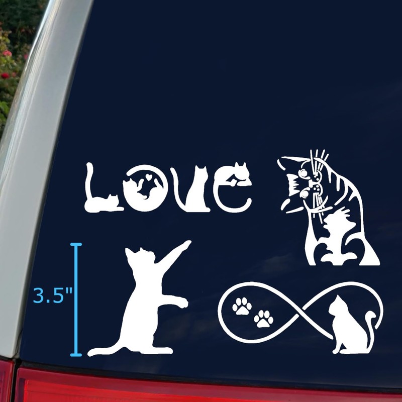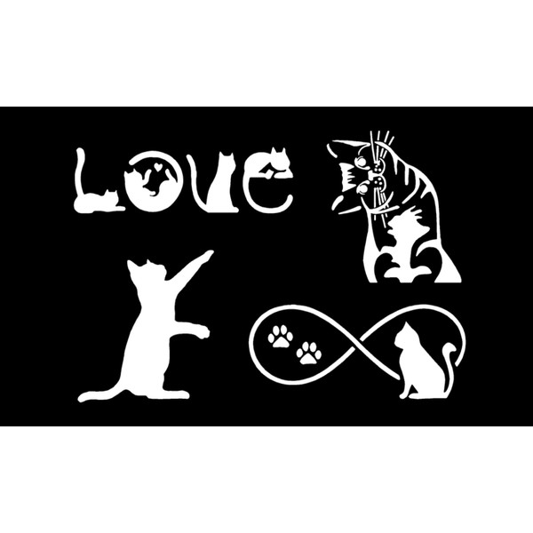 Cat Decal 4 Pack: Cat Pawing, Kitten Looking, Love, Infinity (Cats White, Small ~3.5")