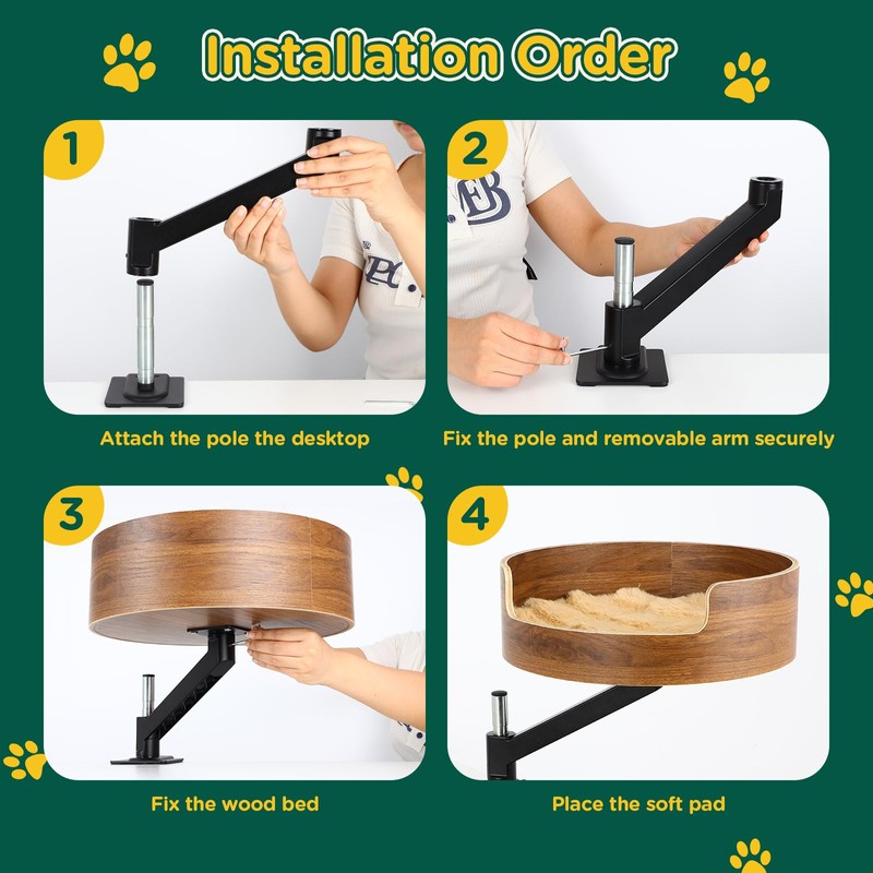 - 【HOMEWORKING】allows you to install a cozy cat bed on the edge of your desk. No more worrying about your cat jumping on the keyboard and interrupting your work! This cat desk bed is designed for your office environment and keeps your cat company.