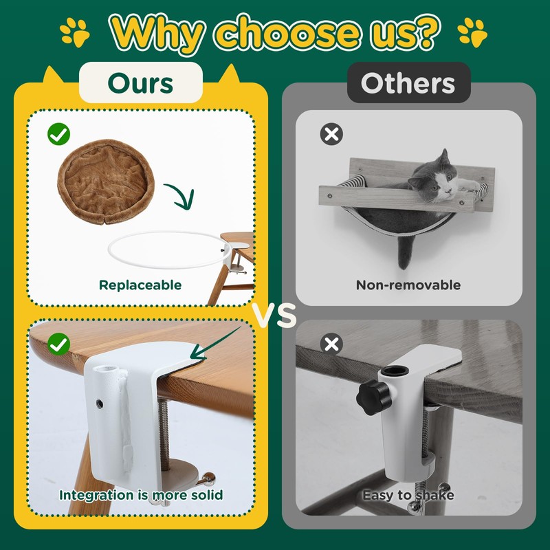 - Durable and easy to clean: This unique cat hammock is made of hand washable faux fur and sturdy materials, suitable for desks or dining tables, keeping your cat fresh and comfortable. It is used to handle daily use.