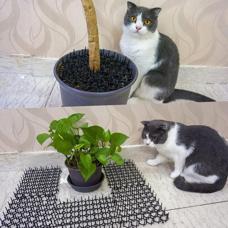 - [Effective Pet Deterrent]:Cat poop mat with sharp spikes effectively prevents cats, dogs and other animals from damaging vegetables, plants or furniture indoors and outdoors.