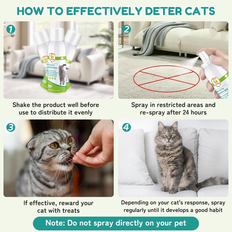 - EFFICIENT TRAINING AID - Our cat deterrent spray provides a safe and humane way to train cats, and with regular use, train your cat to avoid specific areas. Continuous use brings positive behavioral reinforcement and helps cats develop good habits.