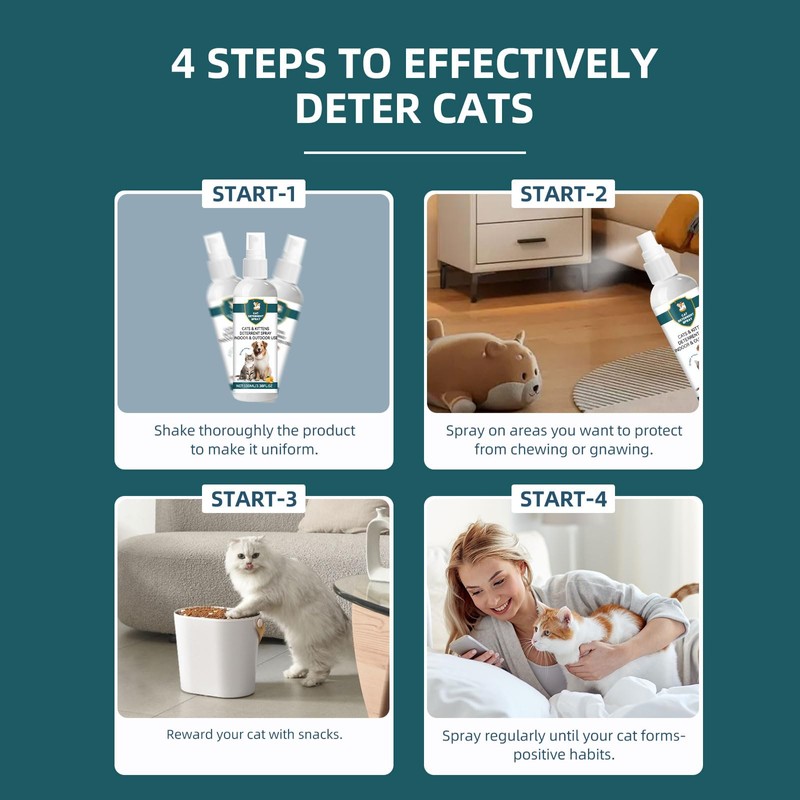 - Effective Cat And Dog Kitten Deterrent : Our cat deterrent spray is specially formulated to prevent cats and kittens from scratching and marking furniture, carpets, curtains, and plants, keeping your home damage-free.