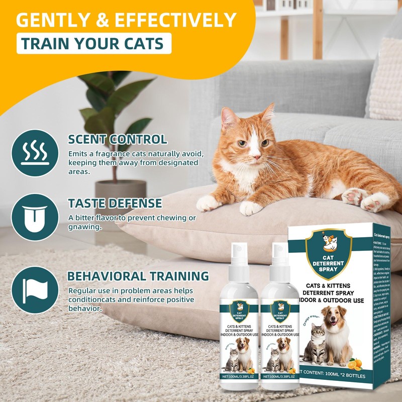 Say goodbye to scratched furniture and unwanted messes with this safe and effective cat deterrent spray. Perfect for pet owners who want a natural training solution to keep their homes protected!