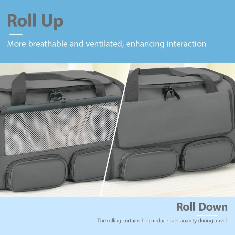 - [Roll-up Curtain for Ultimate Comfort & Privacy]: Give your pet a stress-free journey with our roll-up privacy curtain. This feature creates a calm, cozy retreat—perfect for anxious or sensitive pets. It also blocks noise while retaining warmth, making it ideal for travel and vet visits.
